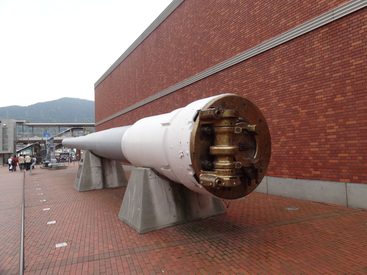このブログ記事では、「大和ミュージアム」の屋外と周辺に展示されていた海軍関係の物を紹介しようと思う。写真上は41センチ主砲の砲身で、「大和ミュージアム」の屋外の敷地内に展示されてる。